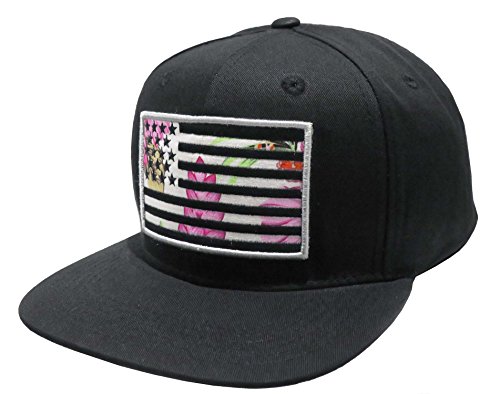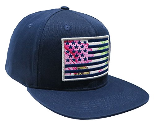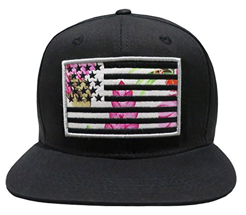 Product Description Show your American pride by wearing this stylish flat bills. Superb embroidery with adjustable plastic snap back. Floral print American flag backdrop. 0