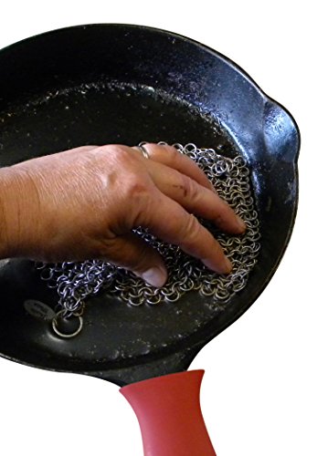 • Includes a 6 x 8 inch, 316L stainless steel chainmail scrubber that lifts away food particles without scratching or stripping away seasoning from cast iron cookware