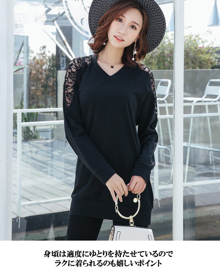 前から見るとカジュアルな印象ですが肩のレースデザインが可愛いです