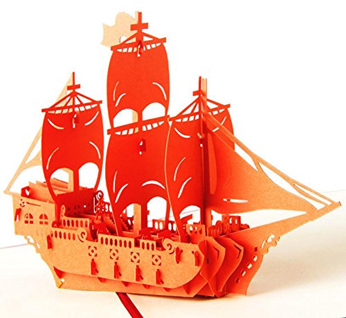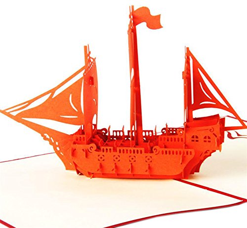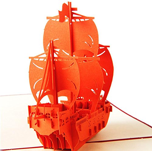 Ocharzy 3D Pop up Cards-birthday Ship Card Bon Voyage (Orange)