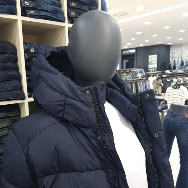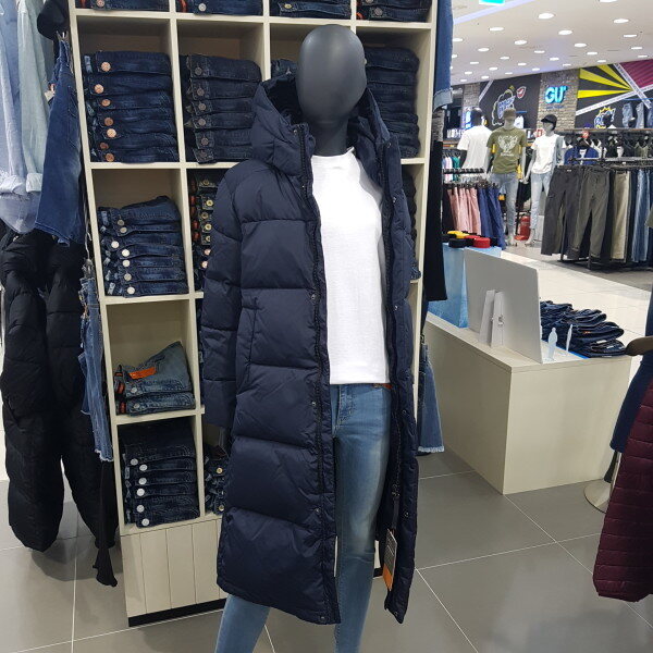 이중넥 처리로 카라와 후드가 동시에 있어 목과 얼굴을 보온, 주머니감에 기모소재를 배치하여 발열기능이 있다.