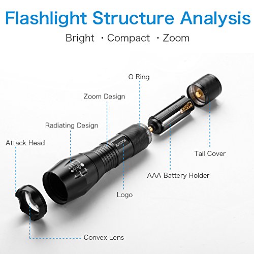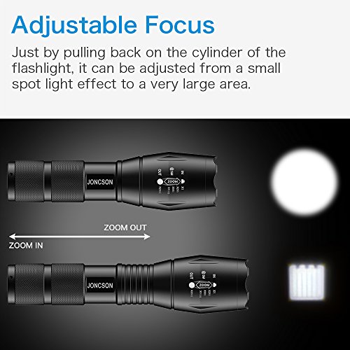 ADJUSTABLE FOCUS: Just by pulling back on the cylinder of the flashlight, the flashlight can be adjusted from a small spot light effect to a very large area.