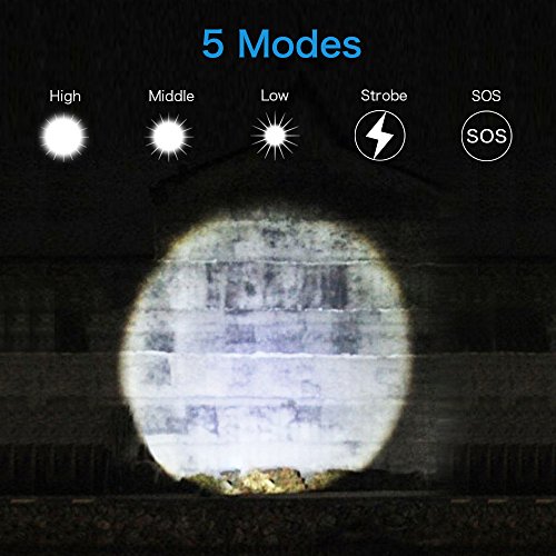 5 MODES: high brightness, medium brightness, low brightness, strobe (intermittent flashing), SOS (emergency signal).