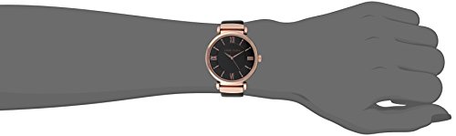 Enhance any ensemble with the simple yet sophisticated design of this Anne Klein watch. Its rose goldtone case contrasts beautifully against the black leather strap, while color-coordinated markers and hands pop against the backdrop of the glossy watch dial. A simple metal buckle brings the look full circle, providing a classic and secure fit that gives you the confidence to wear this watch anywhere.Feature