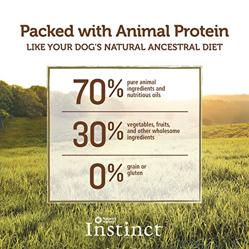 - Feature : Natural ingredients with added vitamins and minerals. No artificial colors, flavors or preservatives / Grain-free and gluten-free nutrition. No corn, no wheat, no soy, no fillers / Protein-rich diets made primarily from animal ingredients as your dog would eat in nature / Healthy Omega 3 and Omega 6 fatty acids for a soft and shiny coat. Probiotics to support healthy digestion. Antioxidants for immune system health / Freeze dried raw coating for pure nutrition and great taste / Instinct is the official pet food partner of Best Friends Animal Society and provides over 1 million meals of Instinct to their adoption centers