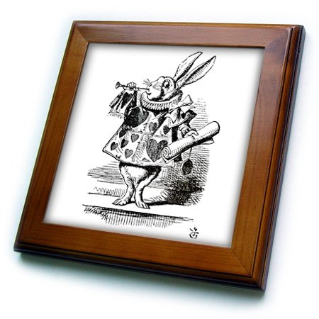 3D Rose ft_193795_1 3dRose Alice in Wonderland White Rabbit in Costume. John Tenniel Illustration-Framed Tile, 8 by 8-inch