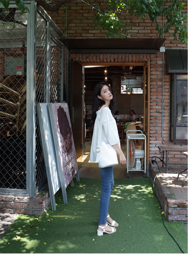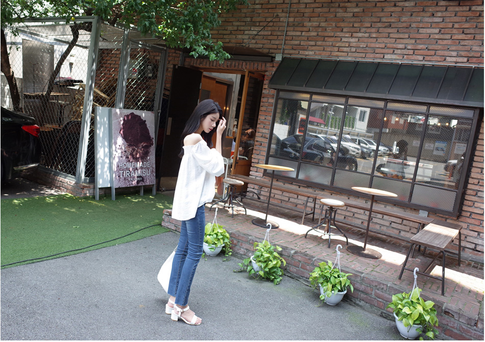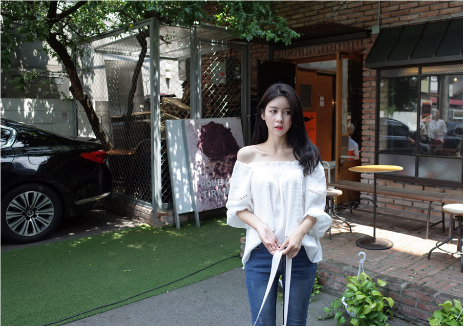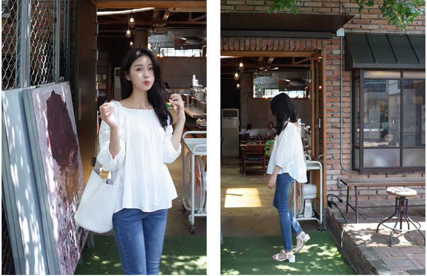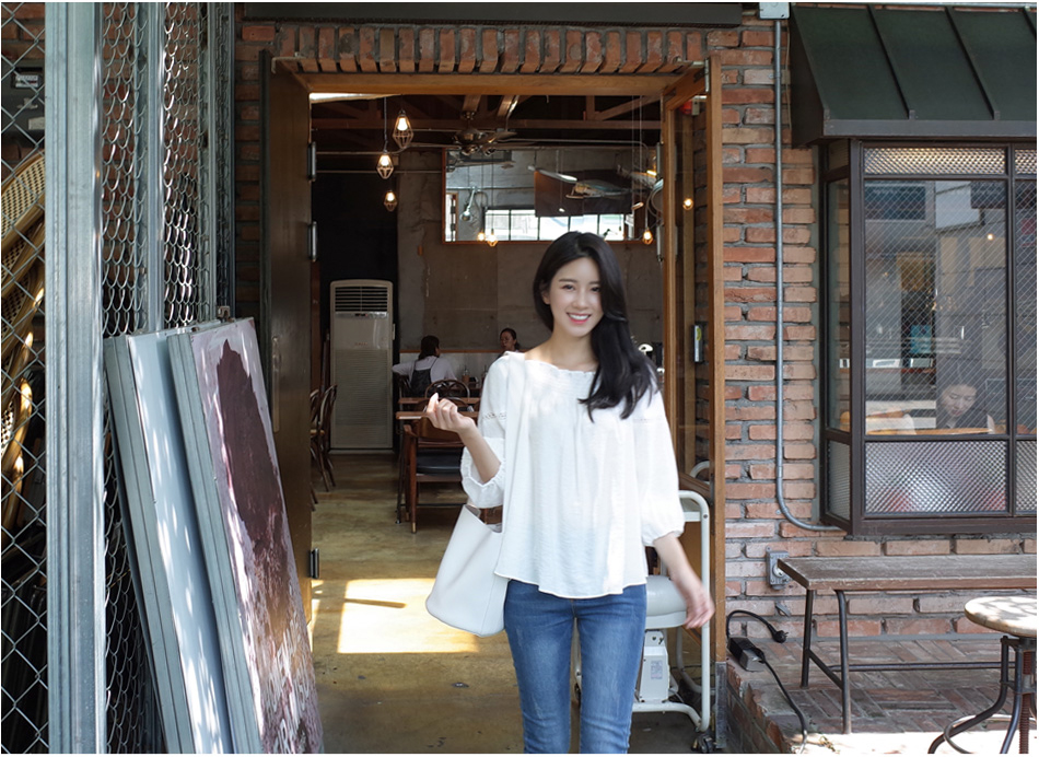 매력적인 오프숄더 블라우스를 소개할께요:)어깨선이 넘 예뻐보였구요. 프릴포인트로