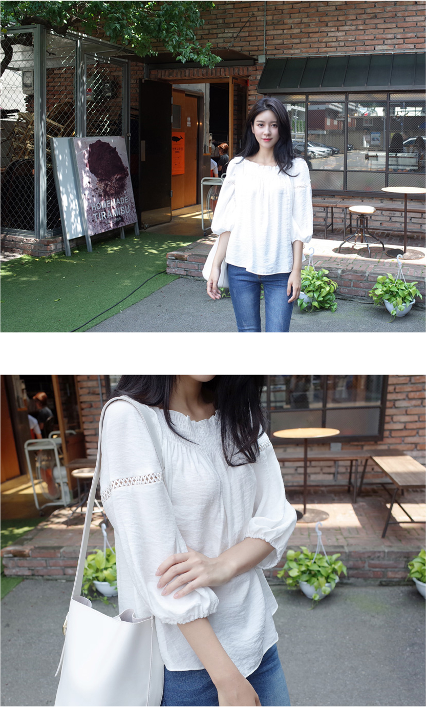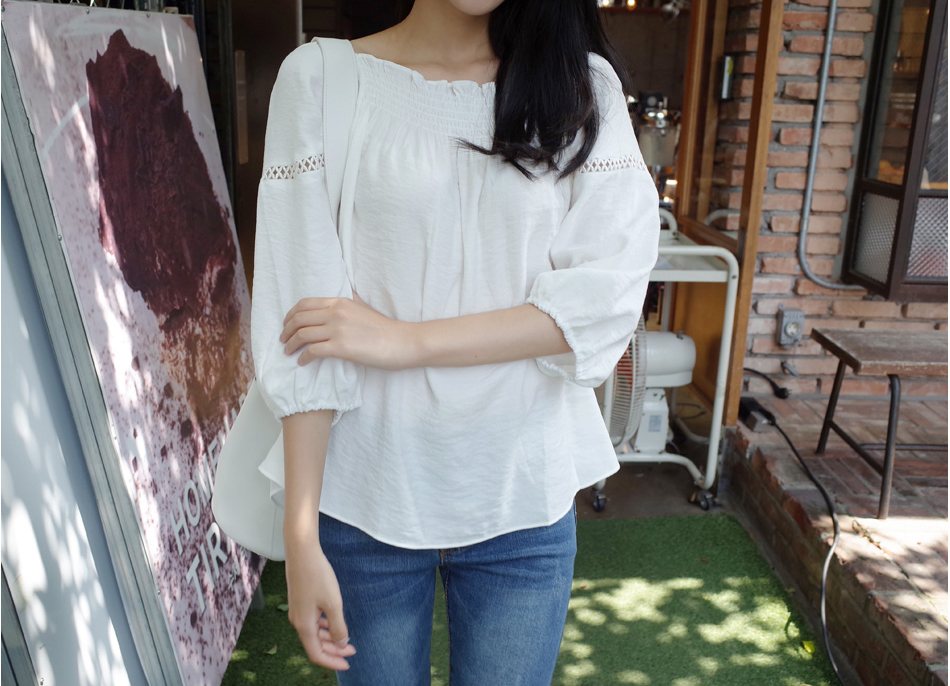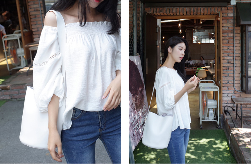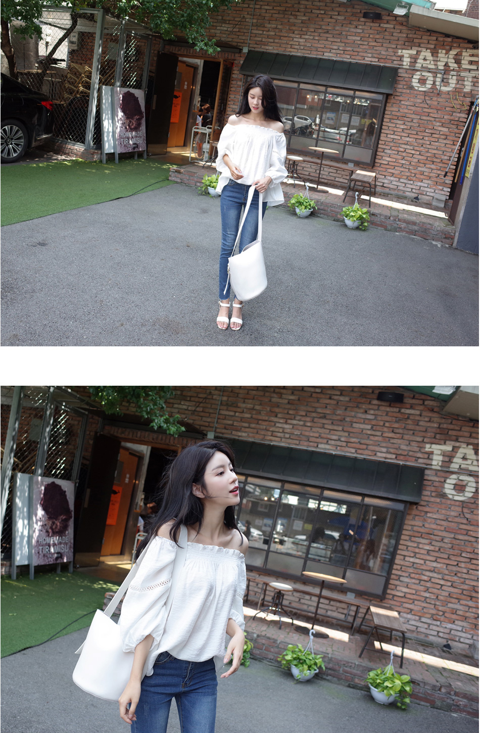 매력적인 오프숄더 블라우스를 소개할께요:)어깨선이 넘 예뻐보였구요. 프릴포인트로