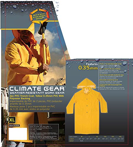 Studio : Custom Leathercraft Publisher : Custom Leathercraft Binding : Tools Home Improvement Product Description Stay dry in wet/rainy weather conditions with this 2 Piece Trench Coat R105 that is constructed with heavyweight PVC, 0.35mm with polyester backing. The 2 pieces that completes this set is the trench coat with a detachable hood. With a storm front and more these features can't be beat! 0