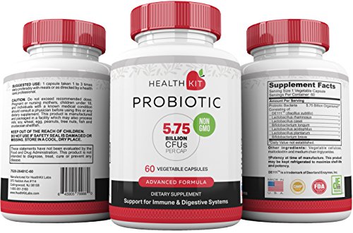 -. Feature : FLEXIBLE FORMULA FOR MEN, WOMEN, AND KIDS. Take what you need, when you need it. Can be mixed in with both hot OR cold foods. / SUPPORTS PROPER DIGESTION of dietary fats and complex carbohydrates into beneficial small chain fatty acids such as omega-3 and omega-6. Replenishes beneficial bacteria for optimal digestive and immune health, helps balance yeast growth, and promotes daily relief from gas, bloating, and irregularity. / MAINTAINS HEALTHY LEVELS of cholesterol, glucose and triglycerides. LOSE WEIGHT. New studies show that gut microflora may improve your metabolism and accelerate fat loss. / STAY ENERGIZED. Fatigue, stress, and illness are often a result of poor vitamin and nutrient absorption. Probiotics help rebuild the microenvironment inside your digestive system that supports full mineral and nutrient absorption so your body can rebuild, recover, and keep going. / ADVANCED FORMULA - Each capsule contains 5.75 billion organisms including DE111TM bacillus subtilis and four potent strains of lactobacillus and 3 strains of bifidobacteria. HealthKit Advanced Probiotic strains are shelf stable for 2 years and do NOT require refrigeration.