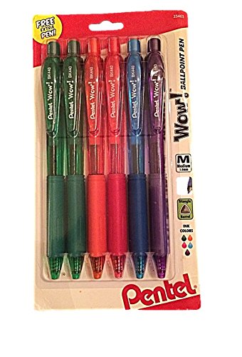 -. Title : Pentel WOW! Colors Retractable Ballpoint Pens, Medium Line, Assorted Ink, 5 Pack PLUS FREE EXTRA PEN