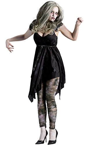 -. Feature : Includes: Handkerchief-edged dress & tattered zombie leggings / Wig, Makeup & Shoes sold separately / COLOR: Grey / MATERIAL: Polyester / REFERENCE NUMBER 121424