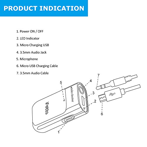 Ifecco Bluetooth Receiver, Portable Wireless Receiver Hands-free & Wireless Car Kits for Home/Car Audio Stereo System
