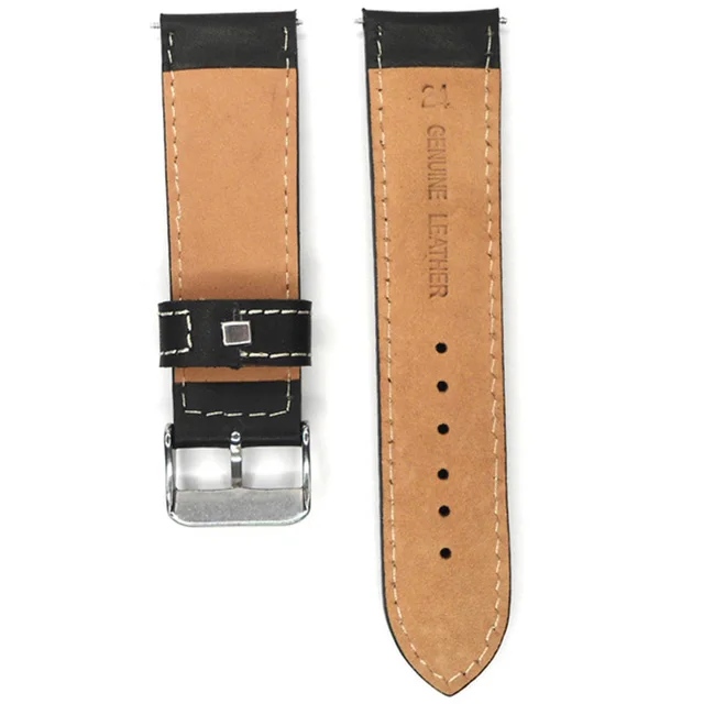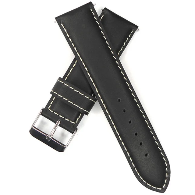 | [해외]정품 가죽 시계 스트랩 24 미리메터 시계 밴드 블랙 빈티지 스타일 손목 스테인레스 스틸 버클 시계 |