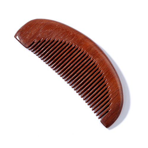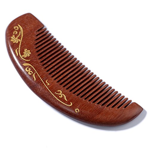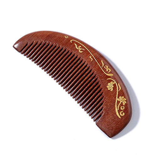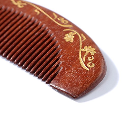 Breezelike No Static Red Sandalwood Moon Shaped Pocket Comb with Golden Painted Flower