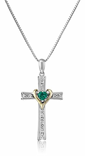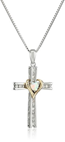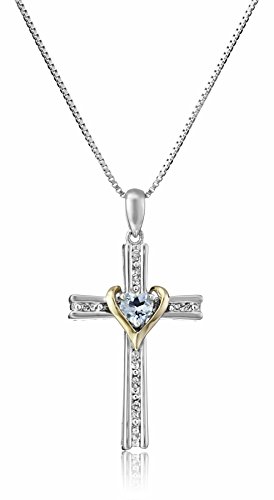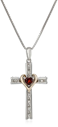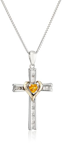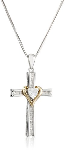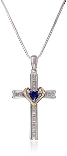 Sterling silver necklace featuring diamond-encrusted cross with precious gemstone at center