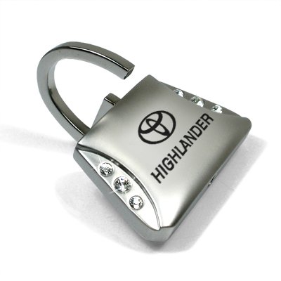 -. Brand : Toyota -. Color : Silver -. Feature : This uniquely-designed key chain features clear rhinestones to enhance its look. SP.R.Ing loaded mechanism to easily attach or detach keys. / Laser engraved car logo will never fade. / Size: 1-3/4"x1-3/4". Silver-matte finished. / Brand new high-quality licensed product. -. Label : AG -. Manufacturer : AG -. MPN : KC9120-HIL -. PackageQuantity : 1 -. PartNumber : KC9120-HIL -. ProductGroup : Automotive Parts and Accessories -. ProductTypeName : AUTO_ACCESSORY -. Publisher : AG -. Studio : AG -. Title : Toyota Highlander Clear Crystals Purse Shape Key Chain