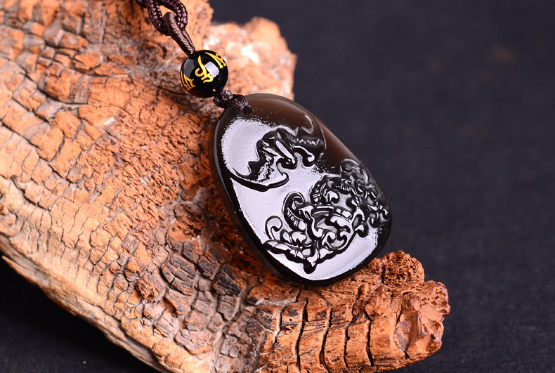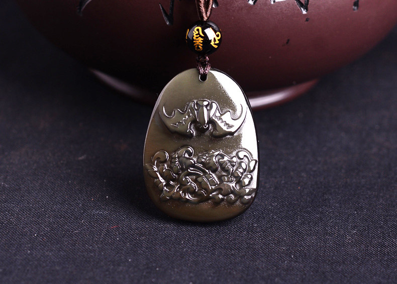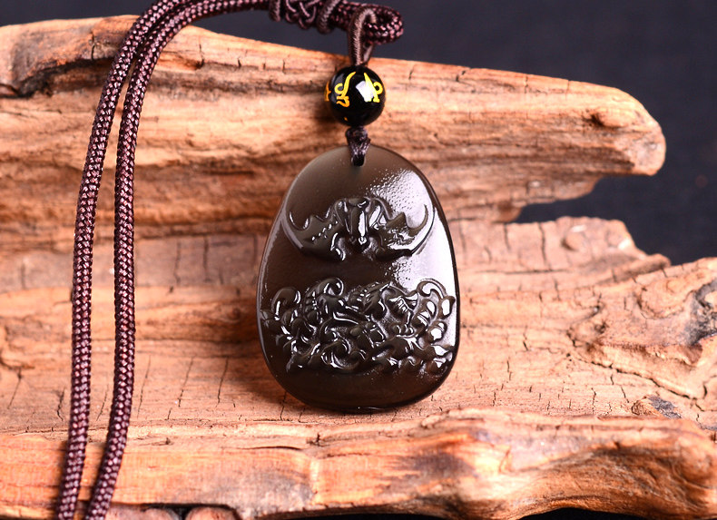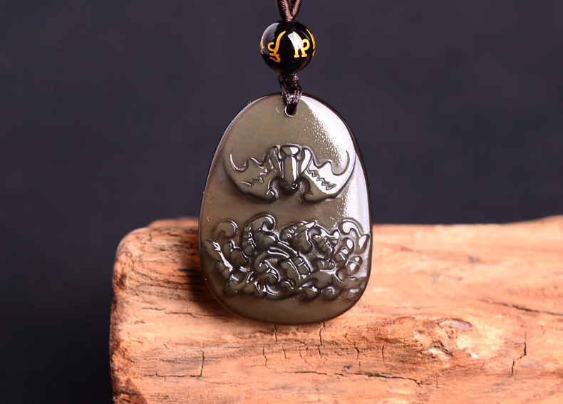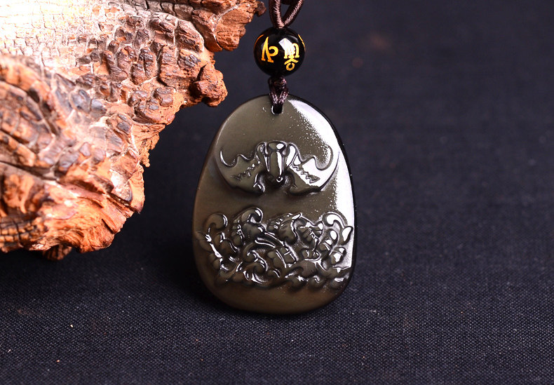开光冰种黑曜石仙蝠迎春属龙吊坠开运吉祥物男女款项链