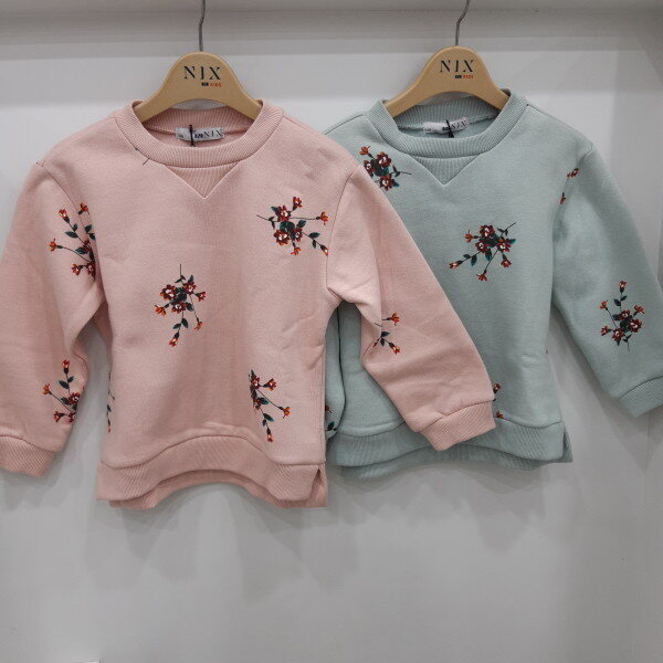 전판꽃프린트되어보온성이좋은기모쭈리여아전용맨투맨 스키니나 일자바텀과코디하기좋음