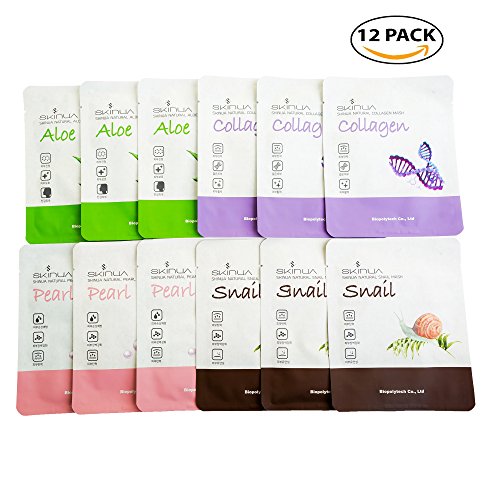 -. Feature : Natural ALOE Mask - Natural Aloe, Baobab Tree and Olive extracts are perfect for locking essential MOISTURE into your skin, helping to fight wrinkles and premature aging while making your skin SUPPLE and YOUTHFUL. / Natural COLLAGEN Mask - Hydrolyzed Collagen and Centella extracts give your skin great ELASTICITY, Pomegranate and Black Soy Bean extracts are helpful for strengthening the skin barrier and will make your skin HEALTHY and GLOWING. / Natural PEARL Mask - Pearl and Essential Fatty Acids pass NUTRITION to dry skin and help blood circulation and cell regeneration. Peptide components provide proteins that are key to ANTI-WRINKLE, ANTI-AGING formulas. / Natural SNAIL Mask - Snail-Filtered Serum packed with VITAMINS and all kinds of MINERALS will strengthen your skin barrier to make your skin SILKY SMOOTH and prevent wrinkles from forming. Corni Extract and Propolis Extract have excellent moisturizing power and will strengthen your skin's FLEXIBILITY and help make lifeless, dry skin into BEAUTIFUL, SUPPLE and HEALTHY looking skin. / SKINUA Natural Aloe, Collagen, Pearl, Snail Mask sheets for a HOME SPA experience to HEAL and restore tired, aging skin and face. You deserve to let your Face Feel Great AGAIN!
