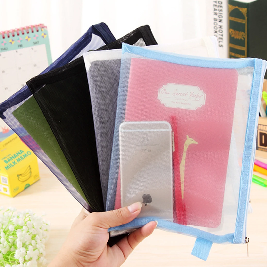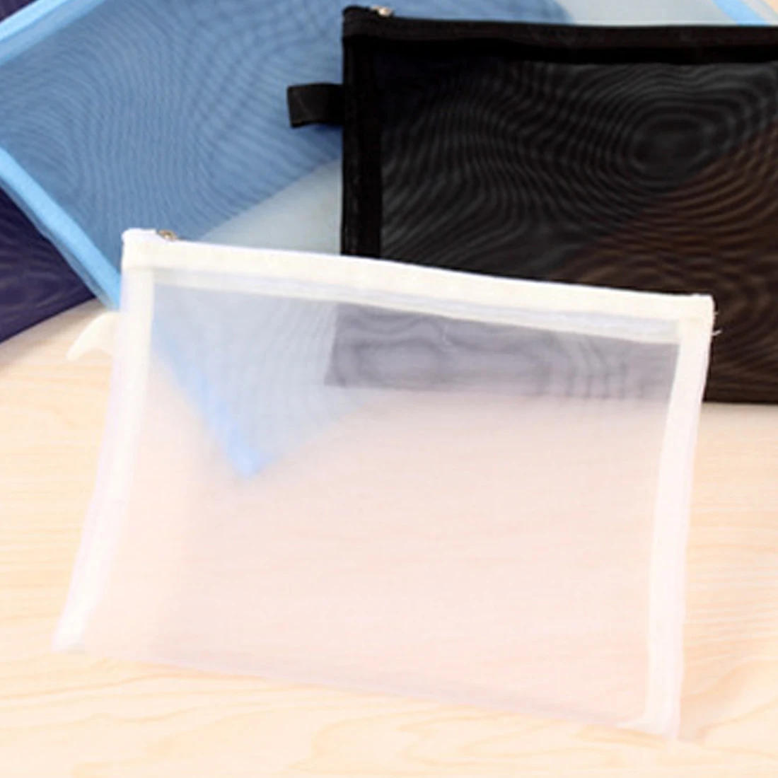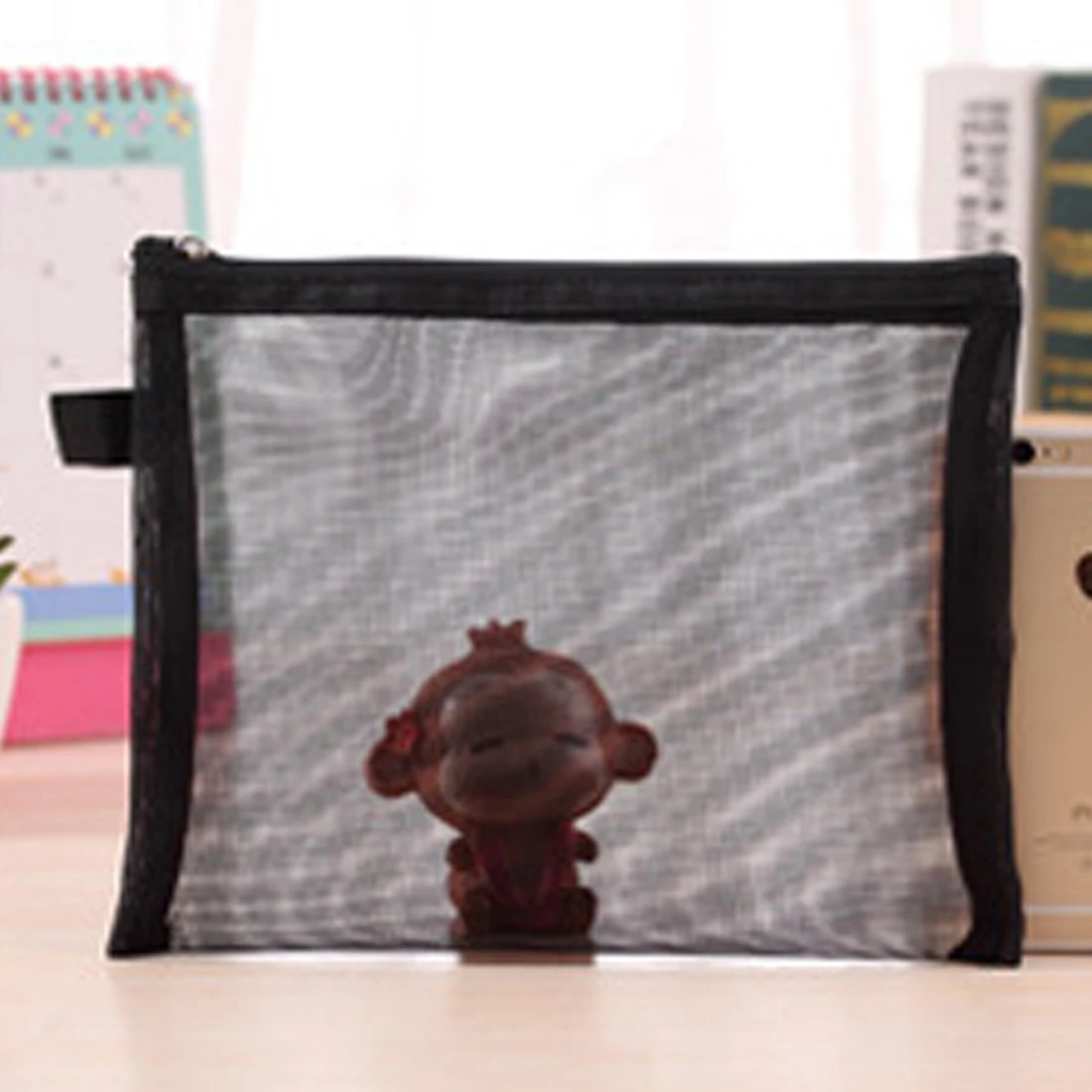 シンプルなファッション透明メッシュ女性化粧品バッグケースジッパーポータブル女性旅行メイク収納袋黒ドロップ無料