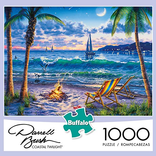 Studio : Buffalo Games, LLC Publisher : Buffalo Games, LLC Binding : Toy Product Description Sailboats at Sunset and a bonfire on the beach make coastal Twilight by Darrell bush a delight to put together. This 1000 piece jigsaw puzzle is a relaxing escape suitable for any season. In addition to being named as one of America's 12 most popular artists by four different National publications, Darrell bush has also worked with National Geographic and the Smithsonian Institute. Every Buffalo Games jigsaw puzzle is manufactured in the U.S.A. From recycled puzzle board. A precision cutting technique guarantees that every piece will fit soundly with the company's signature perfect SnapTM. A bonus puzzle poster is also included so that you have a handy reference of what the completed puzzle should look like while you put yours together. 0