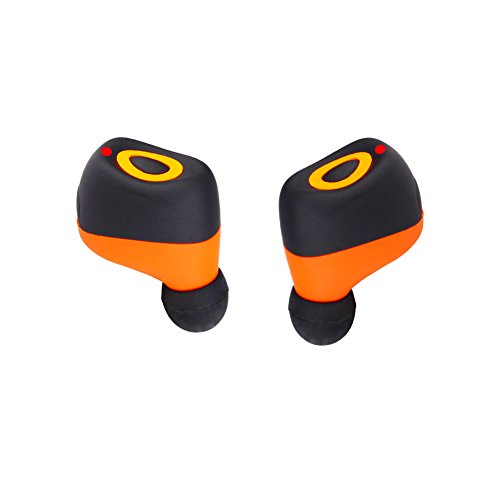 -. Feature : 【True Wireless Headphones 】:Adopted with TRUE WIRELESS Technology. The right and left headphone sync with each other trough wireless and provide stereo output soud. No more wires bound. Most popular dual wireless earbuds, suit for indoor relaxing or driving. / 【Comfortable and Lightweight】:With Ergonomic Side-in Design, this earbuds ensure comfortable and stable tilt in wearing. No pain after wearing the earphones for hours. Suit for most people's ears. Ultra lightweight and mini size, providing comfortable listening experience. / 【Bluetooth V4.1 Version】: Compatible with almost all the Bluetooth-enabled devices. Supports Multipoint Technology Can connect to two different devices in 10 meters range simultaneously. / 【Long Service Time】: Built-in high performance rechargeable Lithium-poly 75mAh battery. High capacity battery provides 5- 6 hours call time and music playtime if using one earbud, 4-5.5 hours if use both earbuds. Full charge in around 1-2 hours , up to 120 hours standby time if one earbud on, 70 hours if both earbuds on . / 【Support Stream Music/Video/Audio】: Great noise canceling function allows you to just focus on your favorite music wherever you are, and clear phone calls are also supported with built-in microphone. Only with a comfort and secure fit will you enjoy a powerful sound. Coming our clear, crisp sound for Music,audiobooks,podcasts and handsfree calls.