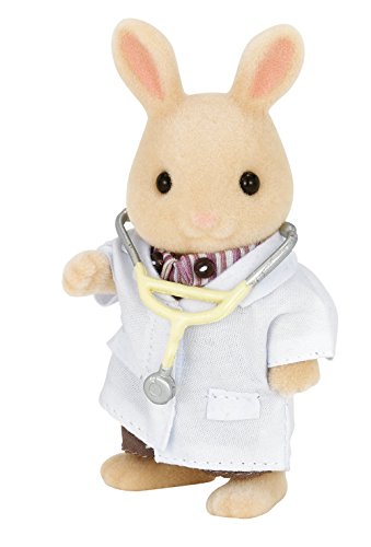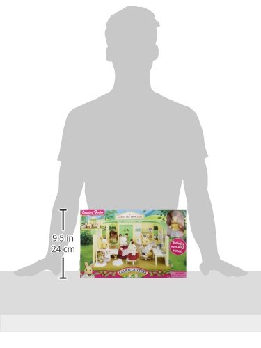 Calico Critters love staying in tip-top shape! Doctor office includes Bunny Ben in doctor uniform, examination bed, doctor's chair, reception desk, waiting area bench with magazine rack, table, stool, height rod, weight scale, clinic sign, crutch, foot cast, stethoscope, clipboard, thermometer, forceps, tray, container, syringe, syringe bowl, pencil, 4 packs of medication, 3 bottles of medicine, gauze bandage, cards box, information holder, 3 bags of medicine, 2 patient's charts, box of stomach medicine, box of plastic bandages, box of gauze bandage, box of cold medicine, medical brochures, 2 sticker cards, 3 appointment cards, 2 magazines, eyesight test chart, calendar label, clock label, 4 posters, and decorative stickers. Building measures 11 1/2" x 8 3/4" x 6".Feature