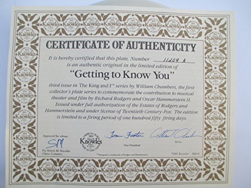 Edwin M. Knowles-" Getting to Know You" By William Chambers, Third Plate in "The King and I" Series.