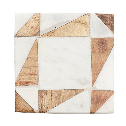 Set of 4 Handcrafted Marble and Wood Coasters