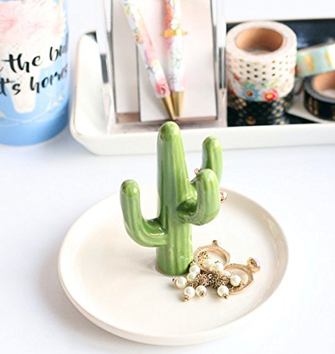 -. Title : URToys 1Pcs 13x10.5cm Nordic Gold Plated Cactus Ceramic Storage Snack Plates Ring Organizer Jewelry Display Holder Bracelet Earings Trays Desk Ornament