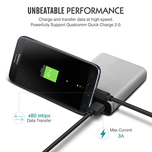 Connector: USB 2.0 A male to micro B male, cable length: 10ft / 3M, supports 3.0 amp fast charging.