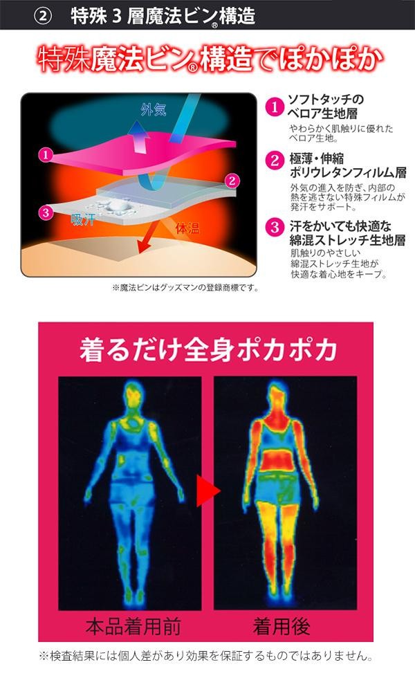 機能性・デザインにこだわったスタイリッシュなサウナスウェット。特殊3層魔法ビン構造で体をあたためます。 |