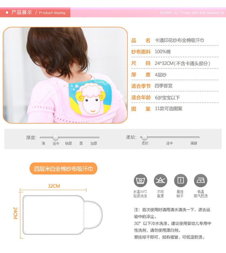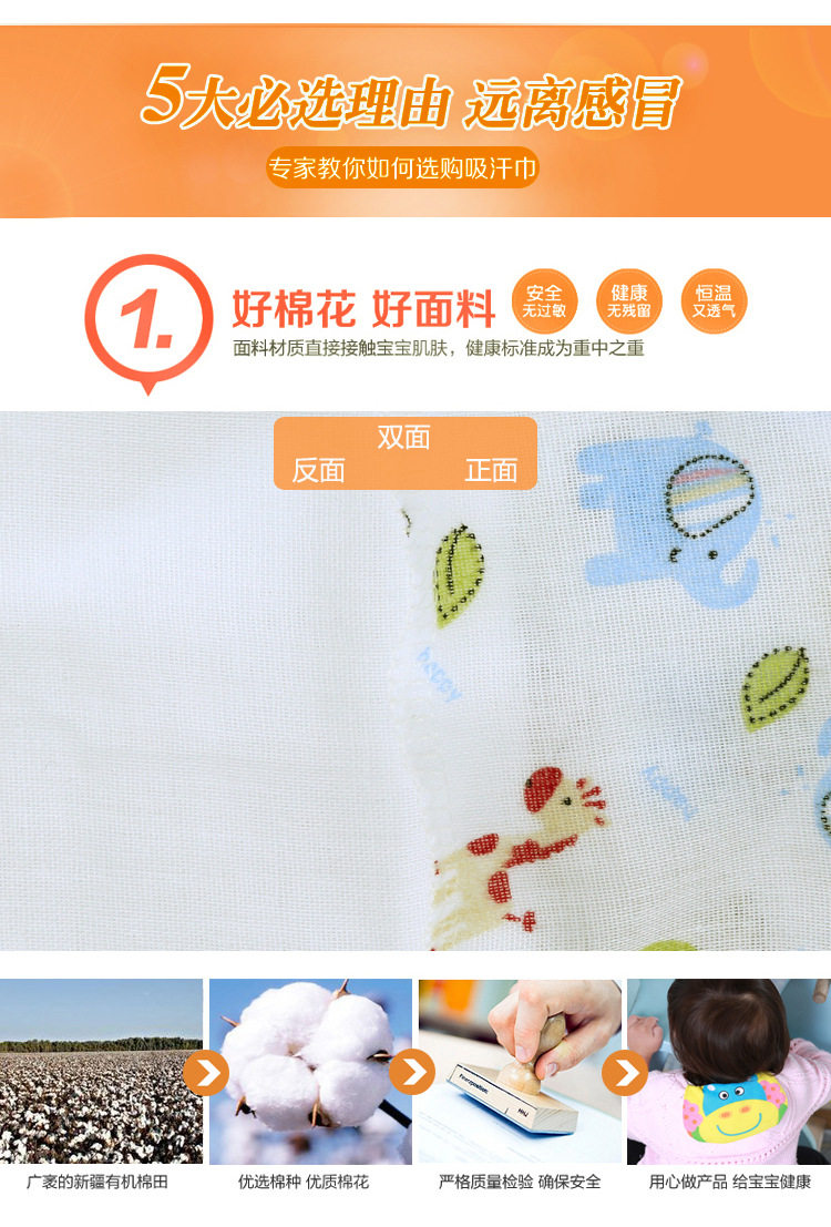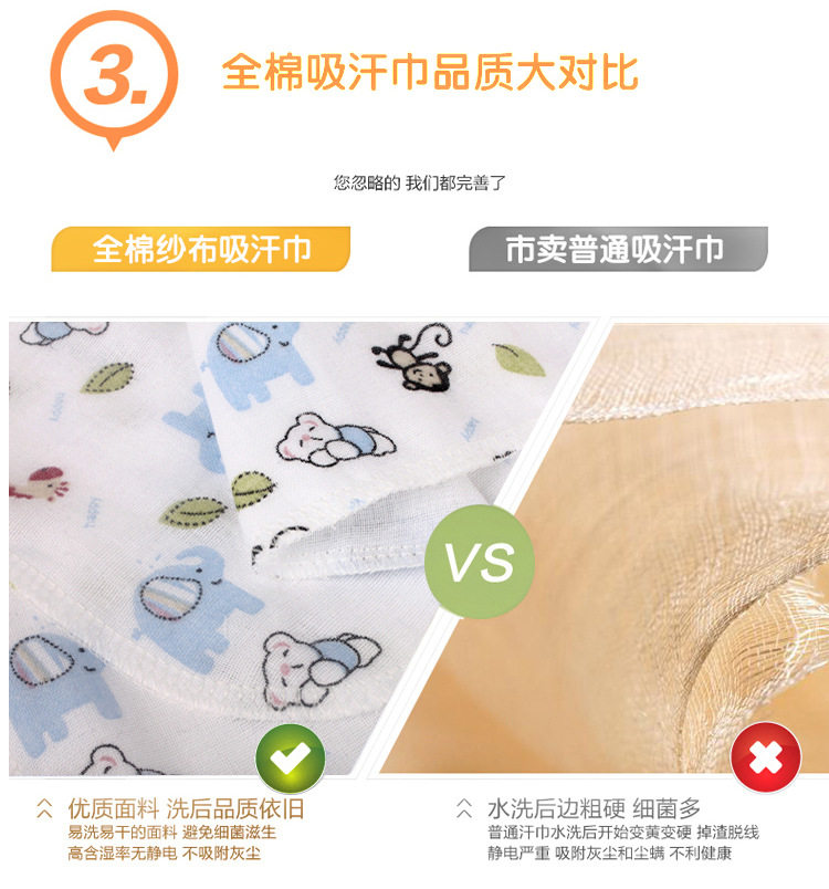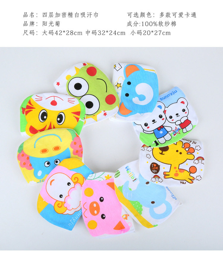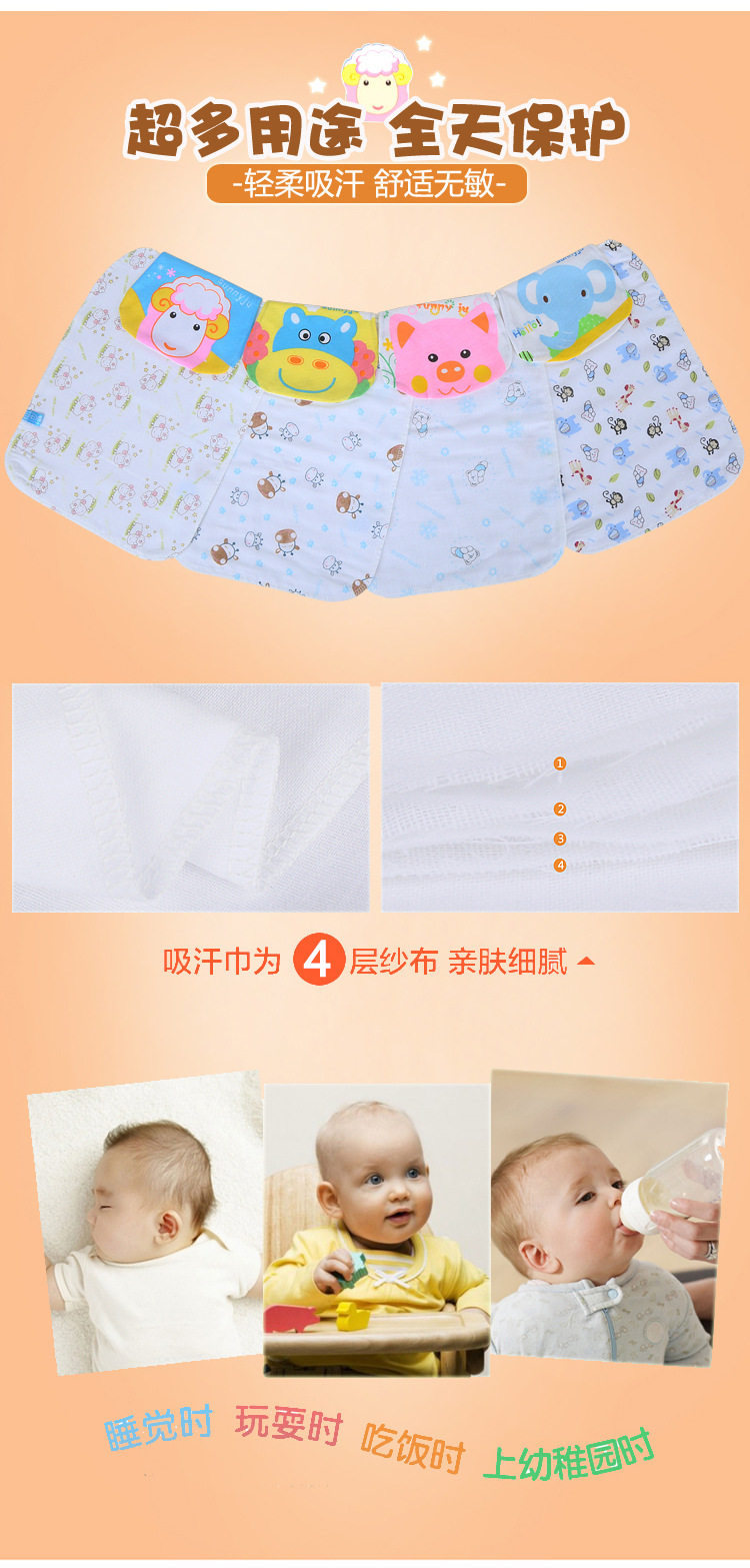 宝宝吸汗巾婴儿童隔汗巾纯棉纱布垫背巾4层加大加密0-4岁