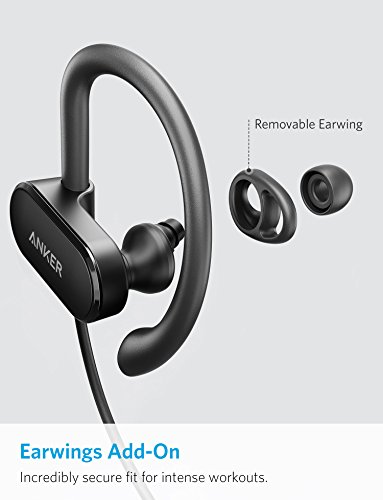 -. Title : Anker SoundBuds Curve Wireless Earbuds, Bluetooth 4.1 Sports Earphones w/ Ear Hook and Waterproof Nano Coating, 14hr Battery, CVC Noise Cancellation, Gym and Running Workout Headset w/ Pouch