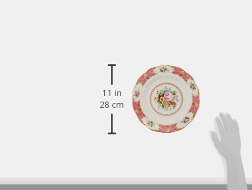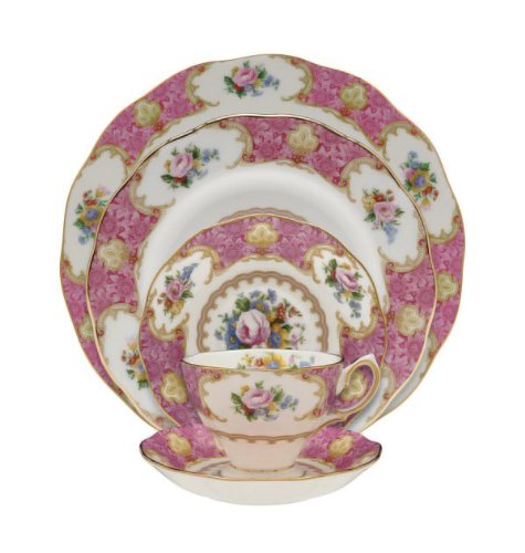 Amazon.com Review Intricately and intensely floral, Lady Carlyle china from Royal Albert marries sweetness with sophistication for a look reminiscent of 18th-century rococo decor. Created from fine bone china, which is both delicate and durable, the pattern features elaborately floral borders in deep pink. Blooming posies, roses, bluebells, and forget-me-nots cluster together for a lush, romantic touch at the centers, borders, and interiors of the classically shaped pieces. Gold accenting in ornately wrought designs around the flowers adds refinement and luster. The beginning of a Lady Carlyle collection, this set totals five pieces and serves one diner. It includes a salad plate, a dinner plate, a bread and butter plate, a saucer, and a teacup. A wide range of Lady Carlyle serving pieces is also available. For convenience, the pattern is safe in the dishwasher, and Royal Doulton guarantees its availability up to two years after purchase. --Emily Bedard What's in the Box 1 place setting. Place setting consists of: dinner plate; salad plate; bread and butter plate; saucer; teacup. 5 pieces total. 0