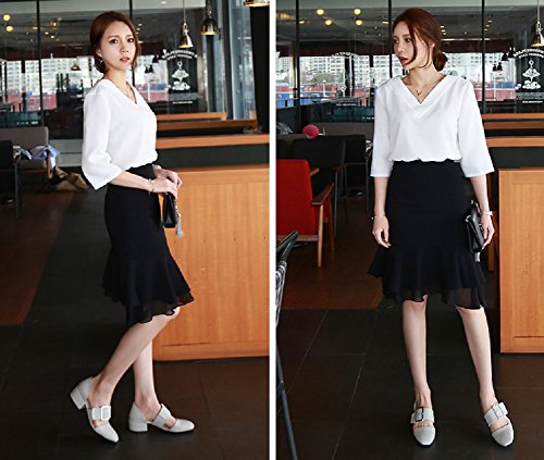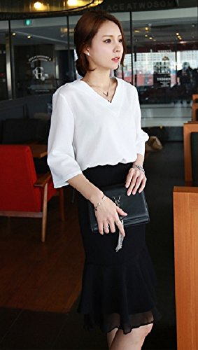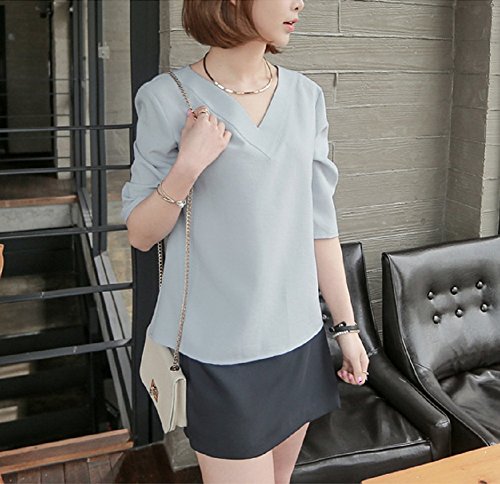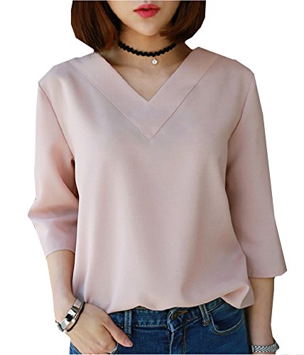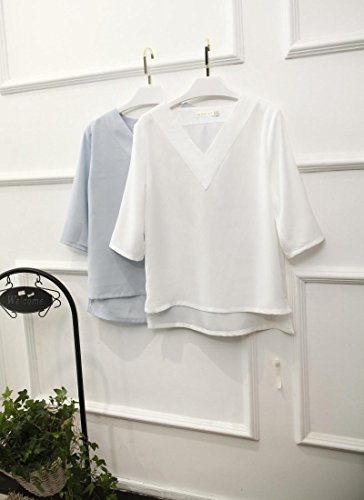 -. Feature : シンプルベーシックなVネックブラウスです。Vネックラインがスタイリッシュで上品な 大人女子アイテムになります。さらっとした少しハリのある素材で、トップスとして1枚ではもちろん、 ジャケットのインナーにも便利に使えるアイテムです。普段の白Tシャツから変えるだけでも、きちんと感がでて大人っぽいスタイルが作れます。 / 【カラー】・ホワイト ・グレー ・ピンク  ※掲載の商品画像と実際の色は、撮影の状況、モニターの表示等により若干異なる場合がありますので、ご了承ください / 【素 材】ポリエステル ・コットン 【サイズ】S 着丈60cm バスト96cm 肩幅38cm 袖丈39cm ・M 着丈61cm バスト100cm 肩幅39cm 袖丈39.5cm ・L 着丈62cm バスト104cm 肩幅40cm 袖丈40cm ・XL 着丈64cm バスト108cm 肩幅41cm 袖丈41.5cm / 前身頃よりも後ろ身頃が少し長めのデザインになっており、トレンド感のあるデザインです。ややストレッチがありますが、透け感のある素材ですのでインナー着用をおすすめします。ほんのりハリ感があって上品なルックスが楽しめる超・優秀ブラウス。飽きのこないブラウスは、ビジネス 通勤 フォーマルな場面においても、さりげなく上品で、仕事でもカジュアルなお呼ばれの席でも、きれいめシャツとしての着こなしもできる可愛いブラウスセレクトです。 / 普段着で着て頂く場合は、スカートやワンピースはもちろん、デニム、スキニーパンツ、スラックス、チノパン、ガウチョパンツ、クロップドパンツ等、様々なボトムスと相性がいので、オンオフ問わず着て頂けます。ボトムスとしてスカートを選ぶ場合はミニのプリーツスカートやチェック柄、タータンチェックのスカート、ひざ丈・ミモレ丈のフレアスカート、マキシ丈ロングスカートと何にでも合わせることができます。 ジャケットやカーディガン、ベスト、コート、トレンチコートなどのインナーとしてお使いいただくのがおすすめです。コーデ次第でカジュアル、きれいめ、ガーリー、ロリータ、清楚系、森ガール系、クラシック系とスタイルを変化させることができます。これからの季節も存分にコーデにお役立てください♪