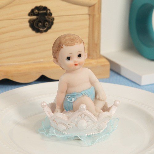 Celebrate your baby boy's baby shower, birthday, or baptism with cute "prince" cake topper. Make a memory you and your family will never forget! Polyresin material, 4"H x 3"D