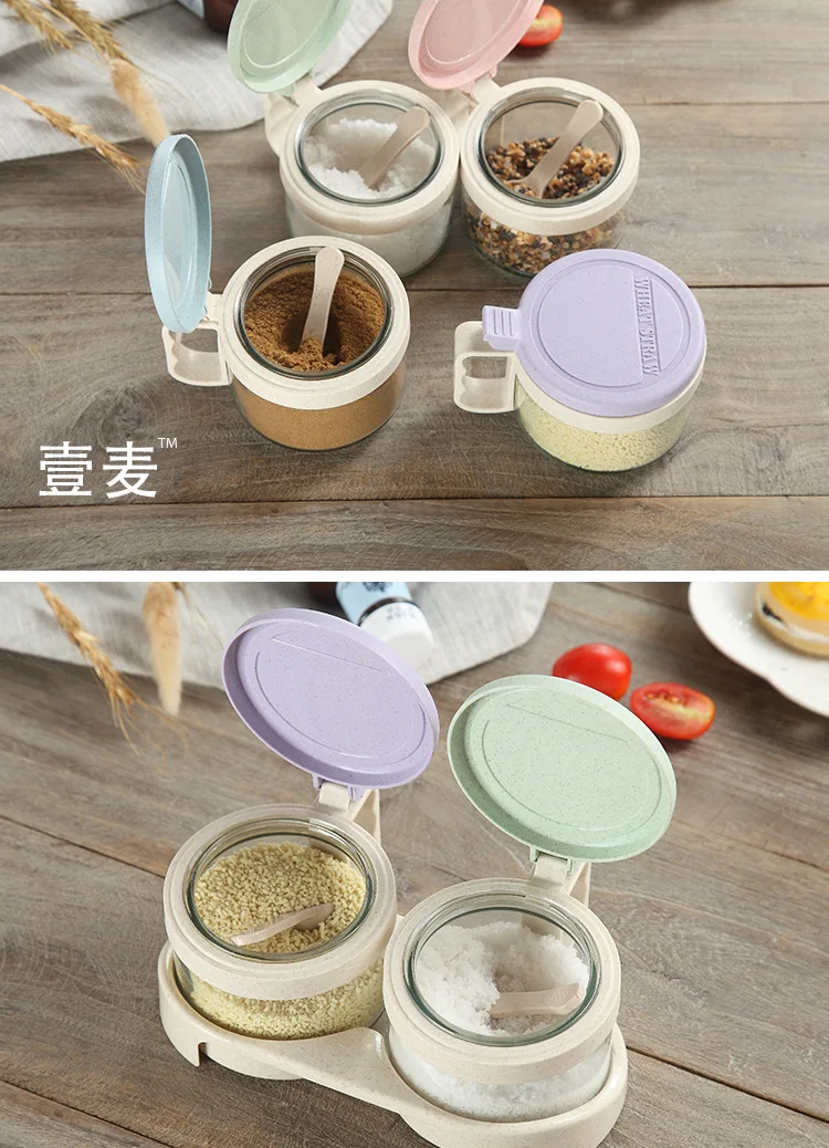 Product Material :Wheat straw Scrylic Spices Storage Box