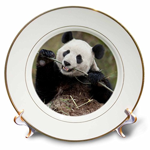 3dRose cp_132354_1 China, Wolong, Giant Panda Bear Eating Bamboo AS07 AGA0009 Alice Garland Porcelain Plate, 8"