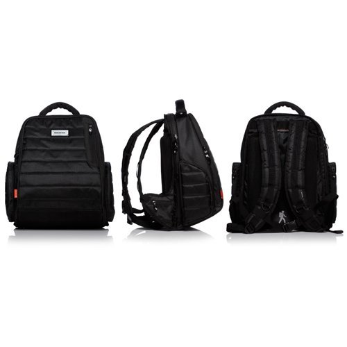 - Feature : Slim contoured form for crowded spaces / Waterproof Sharkskin shell with industrial rubber sole and piping, PVC-free / Laptop compartment with restraint strap (fits 12"-17") / 2 removable padded hard drive boxes. Rear compartment fits small stack of essential vinyl's. / 100% Animal free
