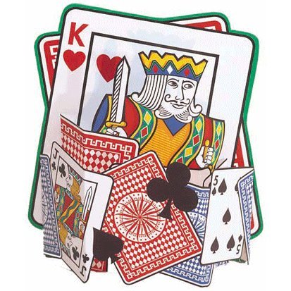 Hold em or fold em? Maybe this King of Hearts will have the answer for you. Our Casino Night Table Centerpiece is made of sturdy card stock and features playing cards. Stands 9" tall by 6 3/4" wide.