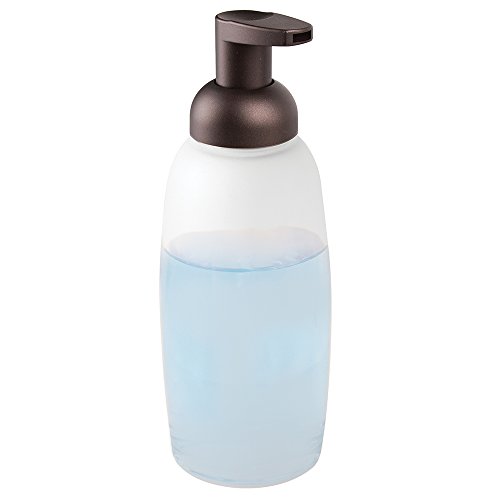 mDesign Glass Foaming Soap Dispenser Pump 2 pc Bathroom Accessory Set - Clear/Bronze, Frost/Bronze