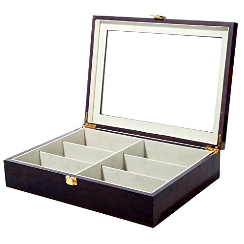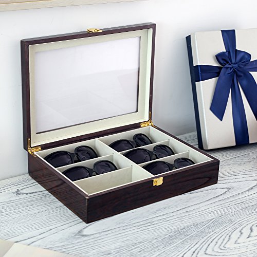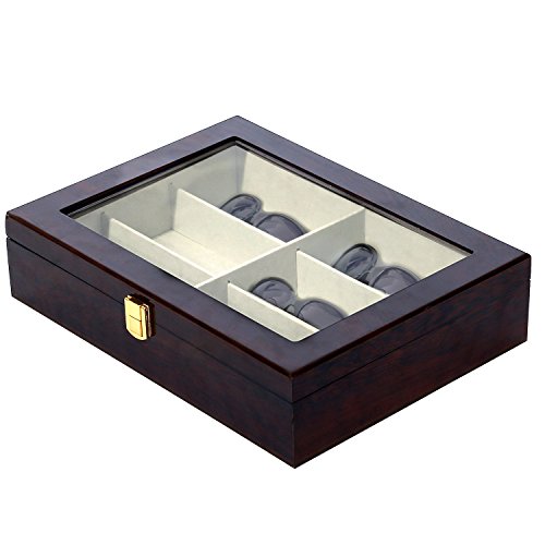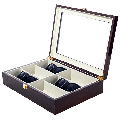 MyGift Wood Eyewear Display Case, 6 Slot Glass Lid Glasses Organizer, Dark Brown