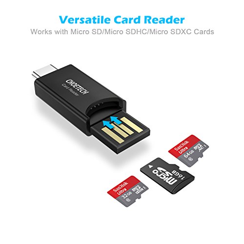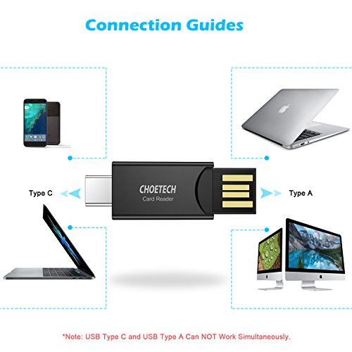 USB C Card Reader, CHOETECH 2 Pack Micro SD Card Reader (with USB Type-A & Type-C OTG Connectors), Support Galaxy S8, S8 Plus, 2016/ 2017 MacBook Pro, Google Pixel/ XL and More USB-C & USB-A Devices