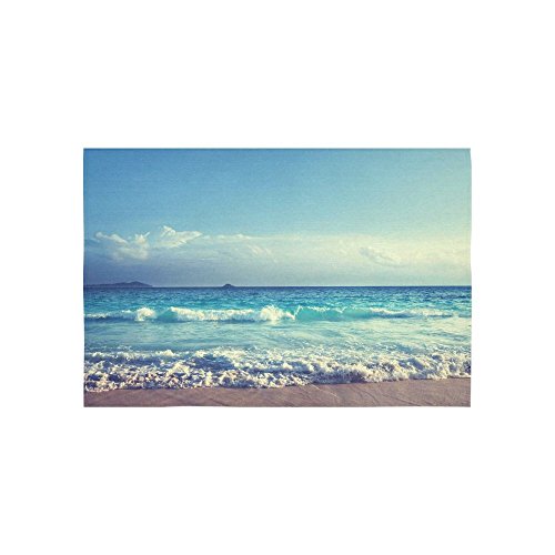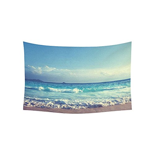 InterestPrint Ocean Wave Decor Collection, Seychelles Beach in Sunset Time, Navy Blue White Tapestry Home Decor Wall Hanging Art Sets 60 X 40 Inches