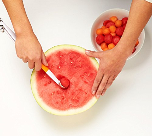 Studio : Crisp Publisher : Crisp Binding : Kitchen Product Description Pretty presentation and easy prep, the melon baller from Crisp does both! with two scoops for small and large melon balls, you can WOW your friends with beautiful food that is effortless to prepare. The unique scoops are designed to easily release melon balls and have colorful soft touch accents on the handles for a comfortable grip. Plus, the melon baller also comes with a serrated scoop that is ideal for hulling strawberries and tomatoes! this three-in-one tool has a rotating design for compact storage as well. Have a ball, and don't forget - cleanup is a breeze! the Crisp melon baller is dishwasher safe. Dimensions are 6.78 in x 1.01 in x 1.38 in. 0