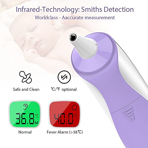 - Quick and Easy: With just 2 buttons, head and Ear, the instant read thermometer is easy controls for anyone to operate safely. The thermometer reads in 1 second and a loud enough beep will notify you it is done