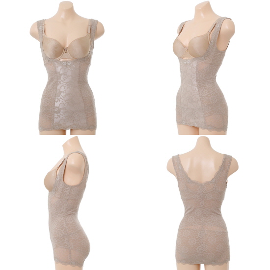 앞판에 올오버 레이스를 컬러 배색(블랙 제품) 처리하여 감각적이면서 섹시한 느낌을 주는 보정 제품.