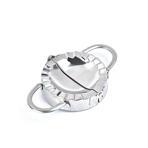 Studio : i-Auto Time Publisher : i-Auto Time Product Description Stainless Steel Dumpling Maker and Dough Press Dumpling press is perfect for making pot stickers, international turnovers and dumplings for appetizers, hors d'oeuvres, desserts and light snacks. Quick, easy and fun to use. This Dumpling Press is one of the easiest tools for quickly making popular pot stickers. Other uses include: dumplings, empanadas, kreplachs, pasties, pierogies, piroshkies, pot stickers, samosas, raviolis, turnovers and more. Feature: *MATERIAL: Made of Stainless Steel, Dishwasher safe. Easy to use and cleanup. *MAKE FUN: Bring you more convenience and fun. *FAST AND EFFECTIVE: It is a Handy Tool to make dumplings quickly and effortlessly. *TIGHTLY-SEALING: Characteristic of making fast, well-distributed and tightly-sealing. *FIT MORE: Make dumpling, pierogi, ravioli, pot sticker and more. Size: *SMALL SIZE: 2.95 inch diameter, 5.12 inch including the handle. *LARGE SIZE: 3.74 inch diameter, 5.91 inch including the handle. How to use: 1. Place dough wrapper on the open press. Add your favorite filling. 2. Moisten edges of wrapper with water and press firmly to close and seal. 3. Remove your finished dumpling from the mold and boil, bake or pan fry according to recipe.